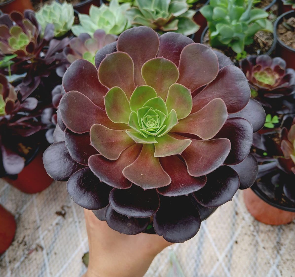 🌿 Aeonium ‘Arboretum Velour’ – The Velvet Rosette of Desert Beauty