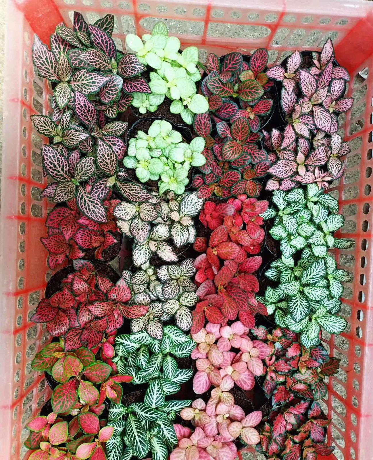 🌿 Assorted foliage colors – pink, red & white veins for a lively look