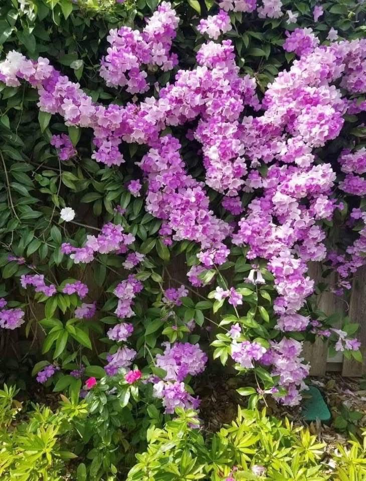 Native to South America and perfectly suited to Indian climates, this vigorous vine is often seen covering gates, archways, and fences in a symphony of purple shades. The flowers change color as they age β starting deep purple, fading to lavender, and then pale almost white, offering a natural ombrΓ© effect on the same plant.